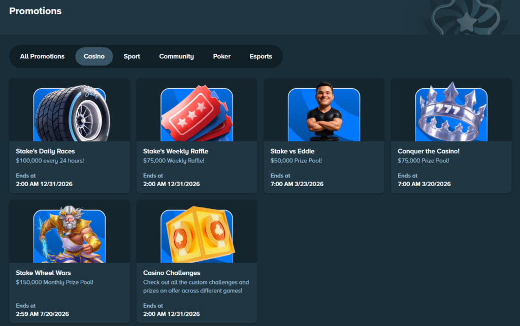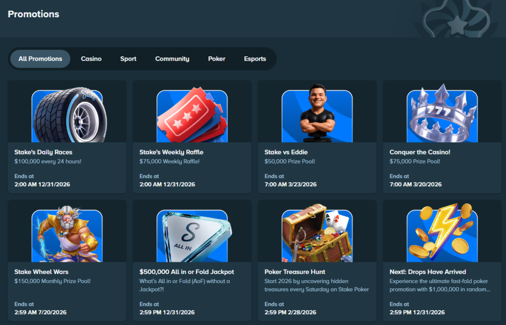 Most of the promo codes that are given out for new accounts will only work for new users, not for existing players. Also, most of the promo codes will only work on a first-come, first-served basis. Stake will keep offering a wide range of promotions to players who already have accounts, as long as their accounts have been validated. These promotions include rakeback, weekly or monthly prize money, reloads, birthday presents, and VIP programs.